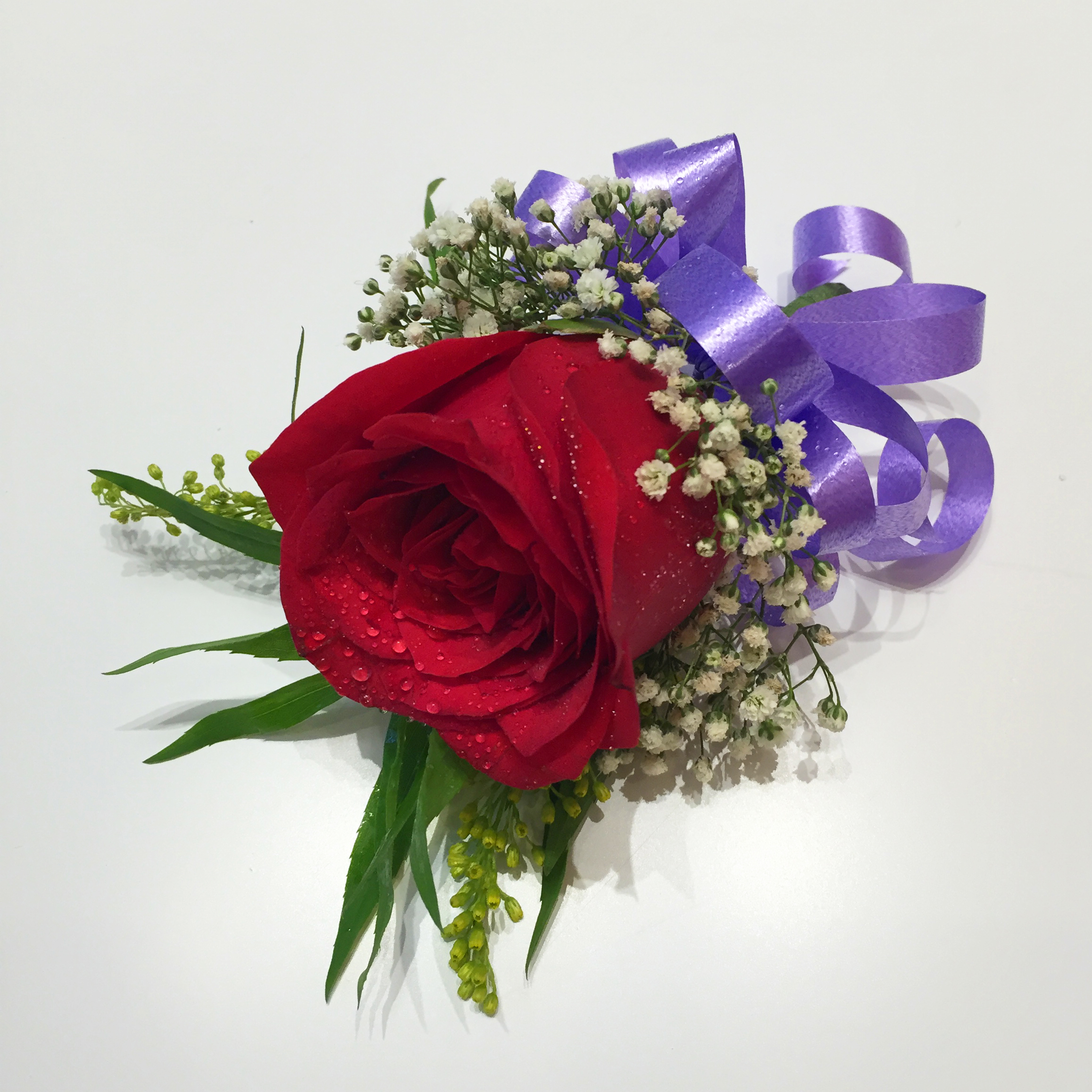 1 Red Rose With Baby’s Breath Pin Corsage.