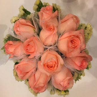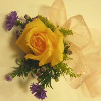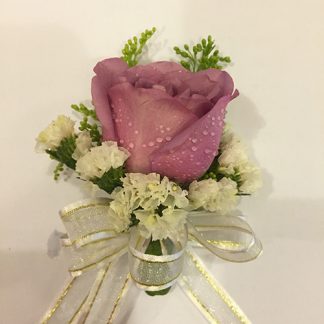 1 White Rose with Gold Baby's Breath Pin Corsage.